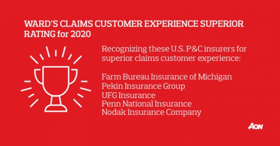 Ward's Claims Customer Experience Superior Rating is based on achieving a minimum Net Promoter Score of 50 across all Personal Auto and Property claims settled and measured in 2020.